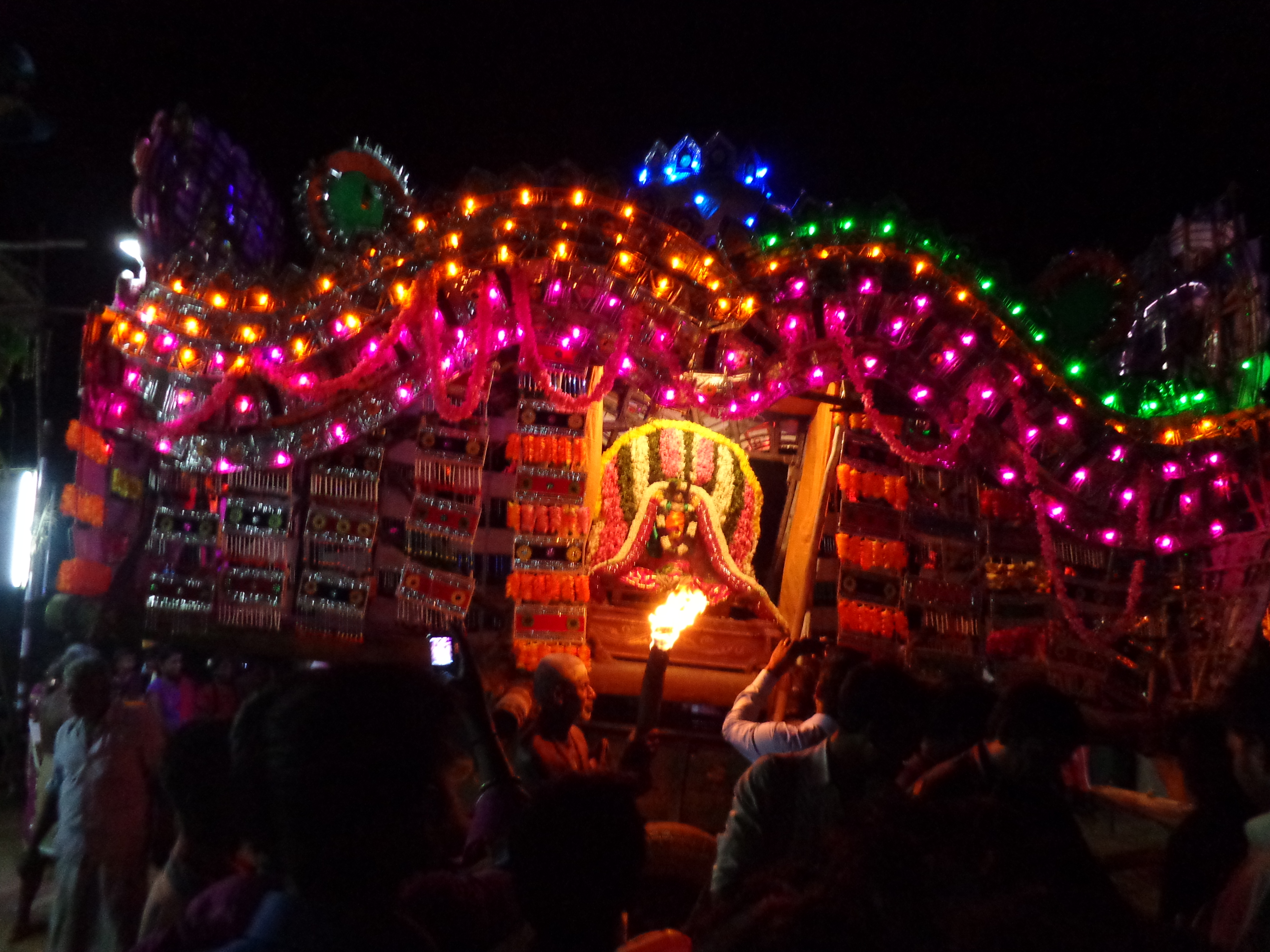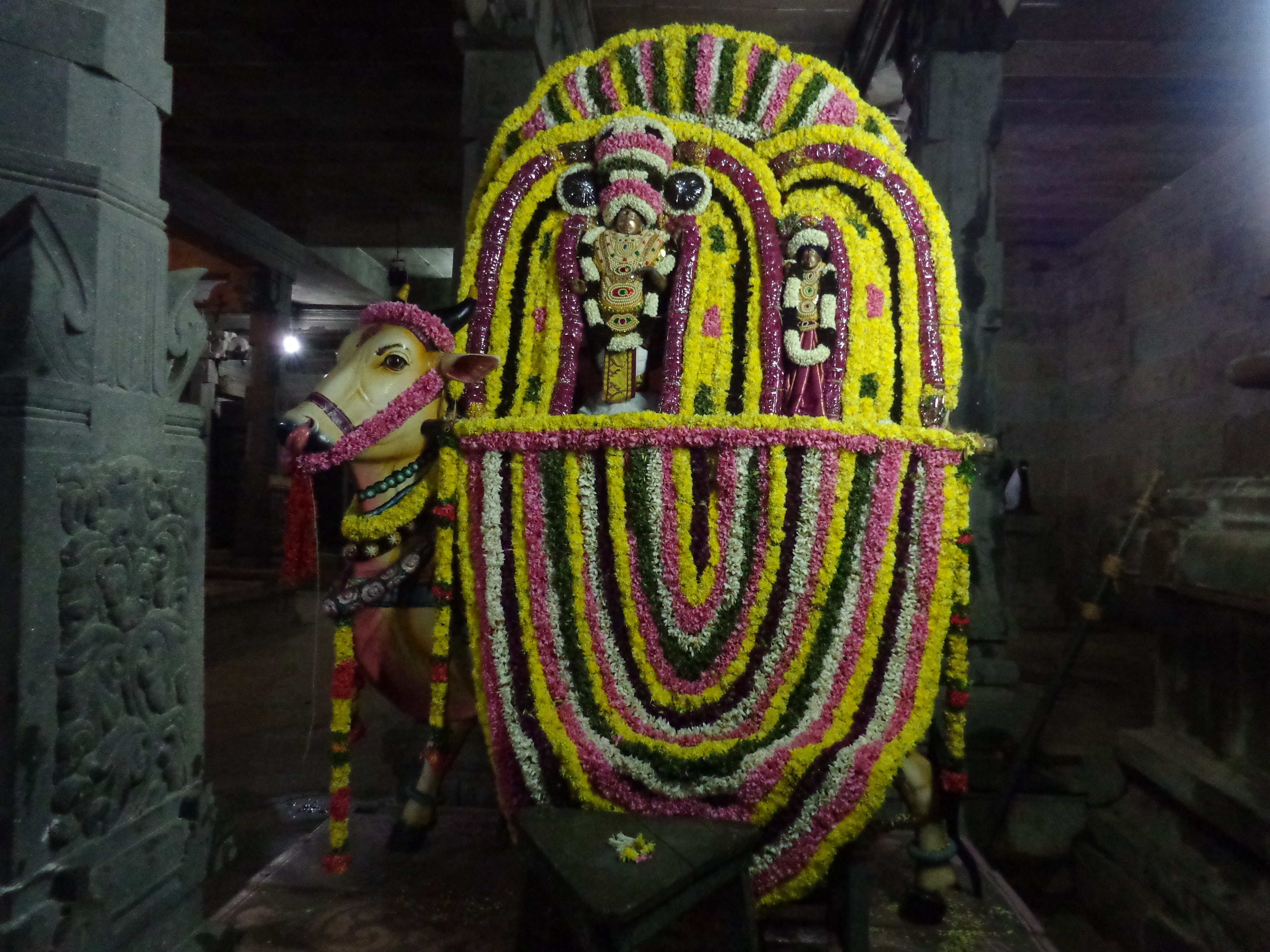 இதே சமயத்தில் கோயிலில் இருந்து சுவாமி அம்பிகையோடு ரிஷப வாகனத்தில் எழுந்தருளித் திருவீதியில் சம்பந்தப்பெருமானுக்கு சுமார் 6 மணி அளவில் எதிர் காட்சி அளித்தருளுகிறார். இந்த அருட் காட்சியை நாமும் கண்டு நெகிழ்கிறோம். கண் பெற்ற பயன் பெறுகிறோம். சம்பந்தர் பதிகத்தை நாமும் பாடுகிறோம். நதி வெள்ளத்தைத் தாண்டும் அற்புதம் செய்த அப்பதிகத்தை ஓதியதால் பிறவிப் பெருங்கடலையும் நிச்சயமாக நீந்தி வீடு பெறுவோம் என்ற நிறைவுடன் ரிஷப வாகன தரிசனம் கண்ட கண்கள் வேறொன்றையும் காண வேண்டுமோ என்ற பேரின்பத்தில் திளைத்துக் கண்கள் நீர்மல்க அவ்விடத்தை நீங்க மனமில்லாமல் நிற்கிறோம்.